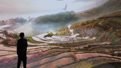 ↑展览上的沉浸式体验装置“大美中国”。