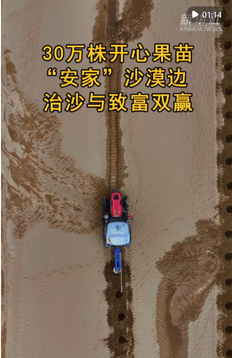 近日,新疆和田地区洛浦县农民抢抓农时,在塔克拉玛干沙漠边缘种下30万株开心果苗。种植现场,机器挖坑、人工放苗,配合高效。