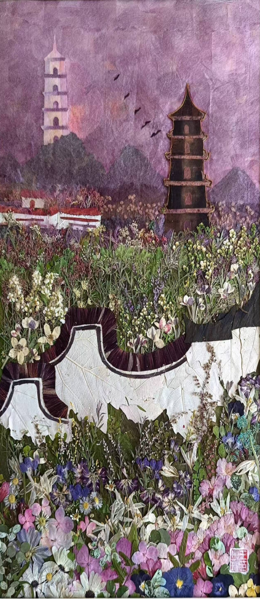 据介绍,2017年,岭南押花艺术被列入中国非物质文化遗产名录,押花艺术宛如一颗的独特星星散发着柔和的光芒。中国押花艺术始于秦汉,形成于唐代,发展于宋代,在明清至民国具地方特色,在当代达到高峰,有悠久的历史和深厚的文化底蕴。瑶姨创作了许多精美的压花作品,也培养了许多热爱压花的学员,为非遗艺术的传承注入新活力。