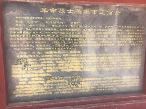 赖水金烈士墓 赖水金出生于1882年,归化县(今明溪县)雪峰镇人,由于小时候患病致疾,成了拐脚,因此被称为“拐子金”。1931年,红军进入归化,为配合红军巩固和发展苏区,赖水金积极参加县农会活动,参与建设红色政权,帮助红军筹粮筹款。 这年夏天的一个深夜,赖水金带领县游击队和部分群众武装,趁着民团头子叶大增大摆宴席、花天酒地之机,包围叶大增的家,愤怒的群众手执土枪、长矛、大刀和棍棒,砸开大门,吓得叶大增越墙逃走,赖水金指挥群众点起火堆,烧毁契约,开仓运粮,为红军筹集物资。 有一次,他发现一些分到田的穷苦百姓,既不敢来耕种,也不敢去收割。于是组织赤卫队员和地方红军前去帮忙,直至将稻谷晒干后,分送到那几户农民家里。被欺压惯了的穷苦百姓终于明白:只要我们穷人团结紧,哪里还怕土豪劣绅? 1934年,红军第五次反“围剿”失利,被迫撤离闽西苏区。时任县委副书记的赖水金,受闽赣省委指派,承担主力红军转移任务,在掩护红军主力西行到宁化后,组织决定让他秘密返回归化开展游击战斗。 主力红军转移后,国民党还乡团对苏区实行了残酷镇压,大肆捕杀苏区干部和群众。由于叛徒的告密,赖水金在途经城郊王村桥时不幸被捕,在狱中,民团头子叶大增对他威逼利诱,百般折磨,而赖水金不为所动,从头到尾都没有吐出一个字。 1934年11月,敌人将赖水金押到县城东北郊岭干山头,把他捆在一棵大树下。在遭受严刑拷打后,丧心病狂的敌人,将他的肝脏取出,高高地悬挂在归化县政府大门上,足足挂了7天7夜,牺牲时52岁。 “丐食牯”罗瑞珍