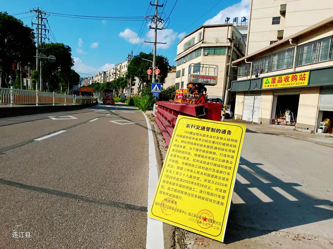 临时交通管制通告警示牌 项目计划工期2个月,预计10月初完工。施工期间,将对该路段实施临时交通管制,连江公路中心将严格督促施工单位落实经审批的保畅通方案,科学组织交通疏导,确保施工安全有序;同时在施工过程中严格把控工程质量,全面落实安全生产和环保防护措施。 项目建成后,将有效改善琯头镇区国道沿线的道路环境,进一步提升道路通行安全水平和服务能力,为促进区域经济发展、保障群众安全出行提供有力支撑。(图片由连江公路中心提供) |