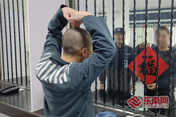 一名罪犯将亲手书写的“福”字送给前来会见的家属 闽西监狱供图