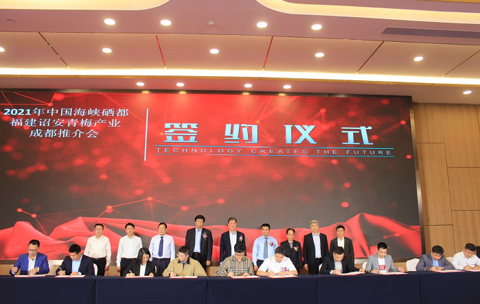 为把青梅产业打造成享誉全国的健康美食名片,在成都糖酒会喜迎八方客商期间,4月3日,由诏安县委、县政府主办,诏安县农业农村局、诏安县青梅协会承办的“2021年中国海峡硒都·福建诏安青梅推介会”在成都瑞城名人酒店成功举办。