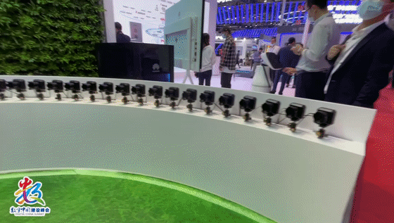 同在6号馆的华为 也亮出了黑科技 60台相机 整齐划一地展示在入口处 是在拍国际大片吗