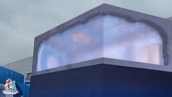 街区内 还有一块 裸眼3D大屏! 快看!圆乎乎的“数娃” 从屏幕里“飞”出来 迎接大家!