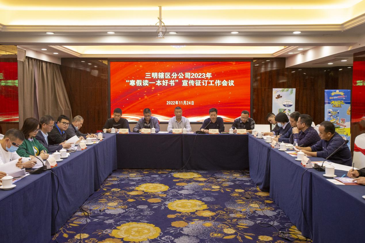 为推动“假期读一本好书”阅读活动品牌在三明辖区深入有效开展,11月24日下午,三明分公司召开辖区“寒假读一本好书”宣传征订工作会议。辖区各分公司主要领导、业务负责人,海峡文艺出版社、福建人民出版社相关人员参加会议。