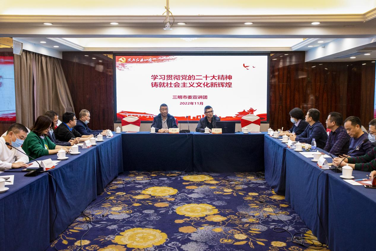 会议明确了宣传方向和征订要求,出版社业务人员对活动用书进行深入讲解和展示。三明分公司总经理詹文谦要求大家转变观念、主动出击,全力以赴做好“寒假读一本好读书”活动的宣传征订工作,努力确保活动取得明显成效。 会议还邀请三明市委讲师团团长陈首龙宣讲党的二十大精神,对二十大文件的宣传征订工作及安全生产工作进行安排部署。