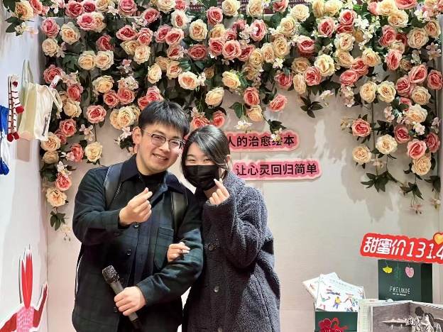 现场主持人兴致激昂的开场、朗读者们声情并茂地朗读、赠送新华书店满减优惠券、文创85折优惠的有奖问答、为优秀朗读者颁发“朗读者证书”等环节都吸引了众多读者参加和观看,也促进了读者到店消费。 2月14日,为营造温馨、浪漫、喜庆的节日氛围,中山·阅埕门店开展“千里情书 为爱告白”朗读者专场活动,以书之名、表我之情,千里情书,为爱告白。 活动现场吸引了许多携手爱人路过的人们驻足观看,甚至参与到活动中,他们携爱而来,为爱发声,有即将步入婚姻的情侣,也有结婚十几年的夫妻……朗读者们声色并茂,感情丰厚,台下观众也认真倾听,不断鼓掌,高潮迭起,弥漫着甜蜜、幸福、感人的气息。中山·阅埕门店还为参加活动的读者特别准备了情人节限定惊喜礼袋、香道表演、告白礼物、限时掉落礼品等环节,陪伴读者共赴浪漫情人节。
