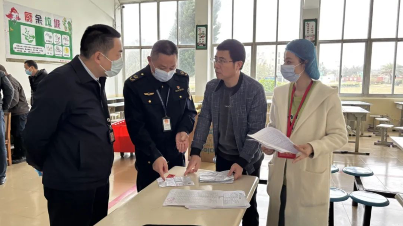 记者了解到,此次行动采取“不打招呼、直达现场”的突击方式。检查人员直接奔赴某中学食堂,从食材的采购渠道是否正规、供应商资质是否齐全,到食材的新鲜度、储存条件是否达标等方面逐一排查(如图)。在蚊蝇虫患防治方面,工作人员仔细查看防虫网是否完好无损、灭蝇灯是否正常运行、角落有无虫害痕迹等。对于食堂卫生保持情况,检查人员深入后厨的每一个角落,查看地面是否干净整洁、餐具清洗消毒是否符合标准、厨房设备是否定期维护清洁等。