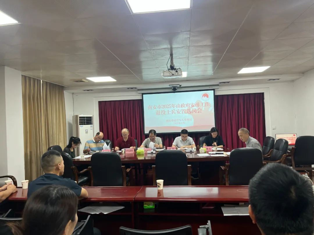 为切实做好本年度安置工作,芗城区提前谋划、精准摸排,共协调统筹优质岗位37个供选择。选岗前,相关工作人员为退役士兵们详细讲解安置政策和安置办法,帮助他们明晰选岗方向。 选岗会上,区退役军人事务局工作人员宣读了选岗规则、选岗纪律。选岗过程严格依据量化评分排序,退役士兵依次自主选择岗位并现场签字确认,整个环节井然有序、高效温馨,得到了退役士兵的一致认可。 南安市 8月28日下午,南安市退役军人事务局组织召开2025年由政府安排工作退役士兵安置选岗工作会议。