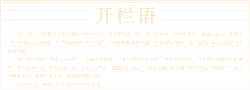 今年,建宁县红一方面军总司令部、总前委、总政治部旧址入选“建党百年红色旅游百条精品线路”的“闽西苏区·红色福建”线路。近日,记者走进建宁,实地感受这片土地上的红色文化和乡村新貌。[详细]