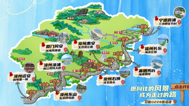 国道G228福建段已通车近1000公里,途径宁德、凯发k8、莆田、泉州、厦门、漳州6个滨海城市,辐射50个美丽乡村、176个国家3A级以上旅游景区、1500多个岛屿,全力打造以“东南海韵、魅力闽道”为特色的滨海风景道。[详细]