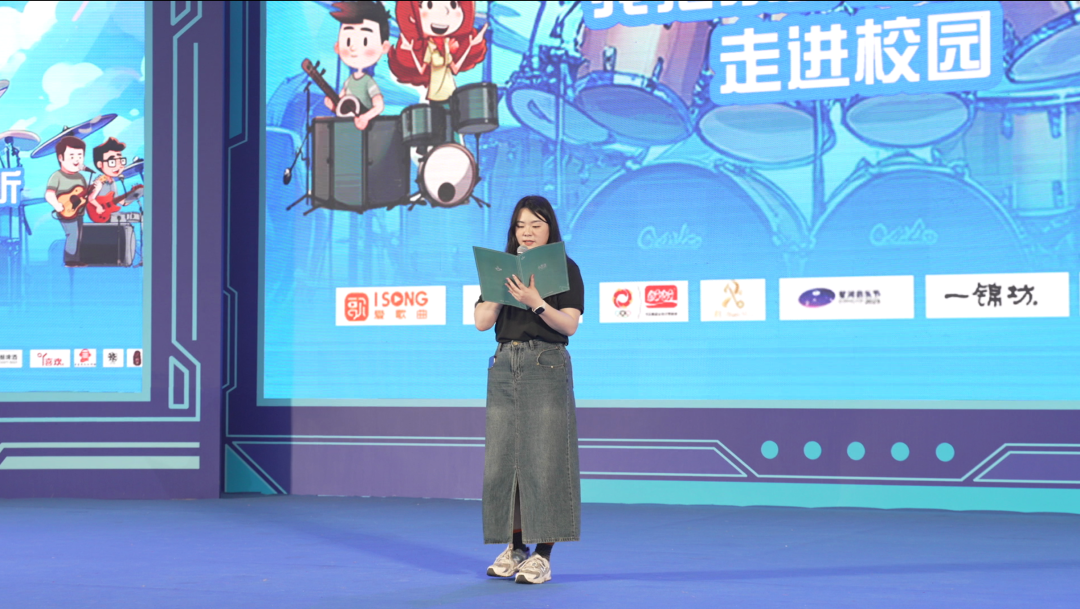 爱歌曲音乐平台音乐总监林嘉欣女士致辞 活动现场,文艺演出节目层出不穷,全国各地音乐界老师也通过VCR表示自己的祝贺,原唱歌手林辉、何珺洁对活动主题曲“我把家乡唱给你听”深情演绎,随后活动正式开启。