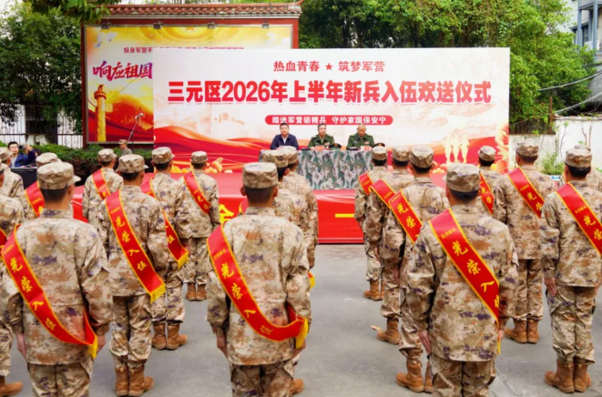 近日,三明市各县(市、区)陆续举行2026年上半年新兵欢送仪式,各地通过隆重庄严的欢送活动、细致暖心的服务保障,为即将踏上军旅征程的新兵壮行,进一步激发广大青年参军入伍、报效祖国的政治热情,在全社会持续掀起拥军优属、关心支持国防和军队建设的热潮。 三元区 3月17日,三元区2026年上半年新兵欢送暨巡游活动隆重举行。带着对子弟兵的美好期许,各界干部群众共同为即将奔赴军营的新兵们壮行。
