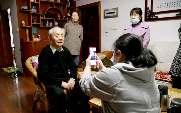 3月7日,龙岩市优待证申领制发服务先锋队志愿者到行动不便的军休干部戴木成家中开展上门服务,采集办证信息,介绍优待证的申领制发流程和合作银行优惠政策。