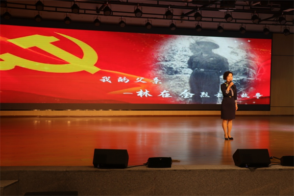 “我是党员我先上!”,林在金烈士的女儿林丽红满含泪水地讲述了父亲在国家和人民群众危难面前主动请缨,在危险来临之际奋不顾身保护战友和伤员而牺牲自己的壮烈事迹。