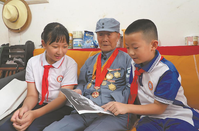 23日,抗战老兵李启福迎来百岁生日,三明市宁化县退役军人服务中心工作人员、爱心志愿者前往李启福家祝贺。李启福向大家讲述了自己参加八路军后誓死守护电台的故事,教育大家要铭记历史,珍惜和平生活,要永远感党恩、听党话、跟党走,做一个对国家和民族有用的人。 福建日报 赖全平 张群 摄 |