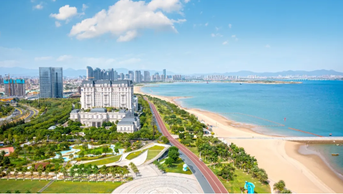 漫步于此,可远眺绿意盎然的城市山林,近观潮汐拍打的金色沙滩。彩色沥青跑道蜿蜒向前,一侧是青峰叠翠,一侧是碧波万顷。沿途棕榈摇曳,绿化带与海天相映,无论是晨曦中的云雾缭绕,还是落日时的霞光浸染,都让人同时领略山峦的秀美与大海的壮阔。