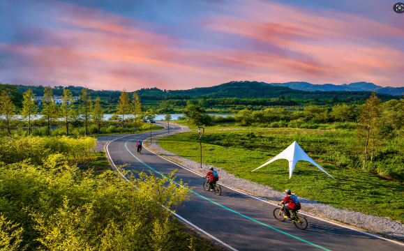 崇阳溪漫游道涵盖 66 公里线性空间的复合型场景运营,整合南平市建阳区至武夷山市两地廊道体系建设运营(城市绿道、森林步道),休闲空间管理(崇阳溪漫游道起终点公园、阿勒泰营地、南林营地)、文旅活动策划(主题节庆、研学体验)及智慧平台运维五大板块,联动沿线古村落遗址、闽越王城博物馆、茶山茶田、乡村合作社形成产业闭环,实现“城-林-村”空间贯通。