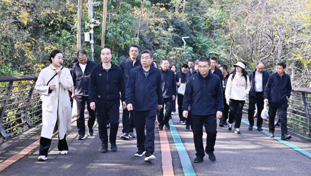 当天10时15分,健步走活动正式开始。全体人员一路沿着蜿蜒的登山步道稳步前行,一路上,大家精神饱满,脸上洋溢着自信的笑容。有的同志步伐轻快,一路领先,展现出勇争第一的决心;有的同志则相互鼓励,携手共进,展现了积极向上的精神风貌。途经茉莉园、祈福台、不见桥等景观节点,大家纷纷驻足欣赏,感受着大自然的美丽与宁静。最终,全体人员顺利抵达芙蓉园终点。