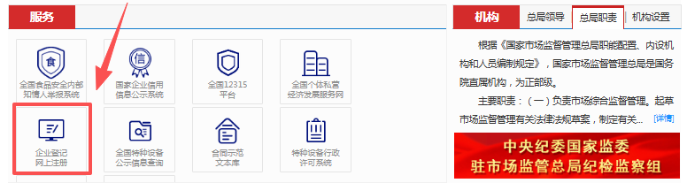 (http://www.samr.gov.cn)找到导航栏中的“服务”,点击“企业登记网上注册”。