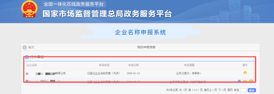 6.登录企业名称申报系统,点击“我的业务申请”可查看业务办理情况。